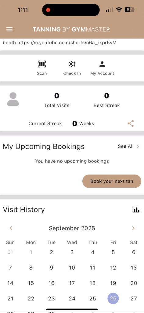 Once you arrive at the Noosa Naked tan booth open the TAN ACCESS APP and you will see an icon in the top middle section that says CHECK IN